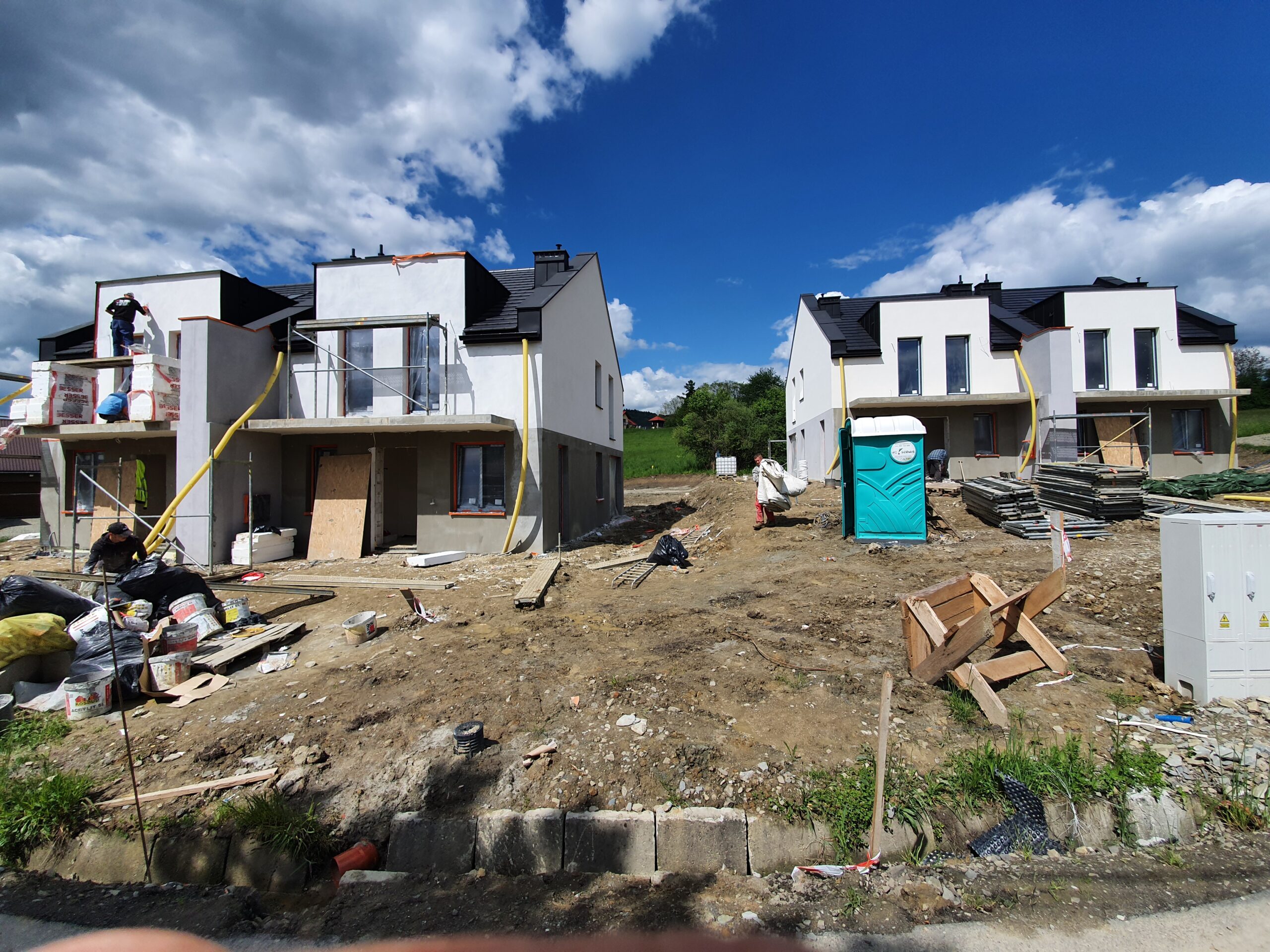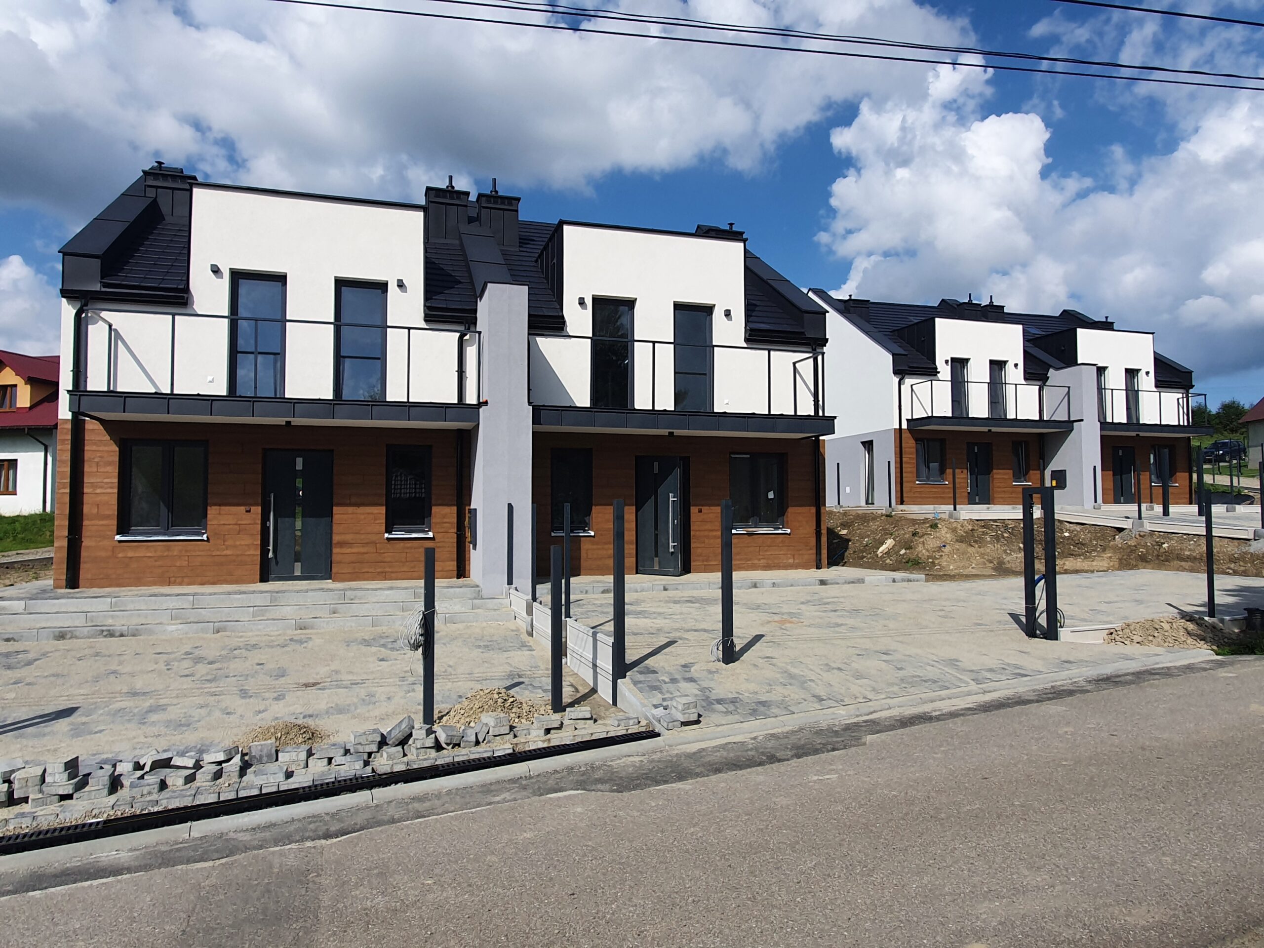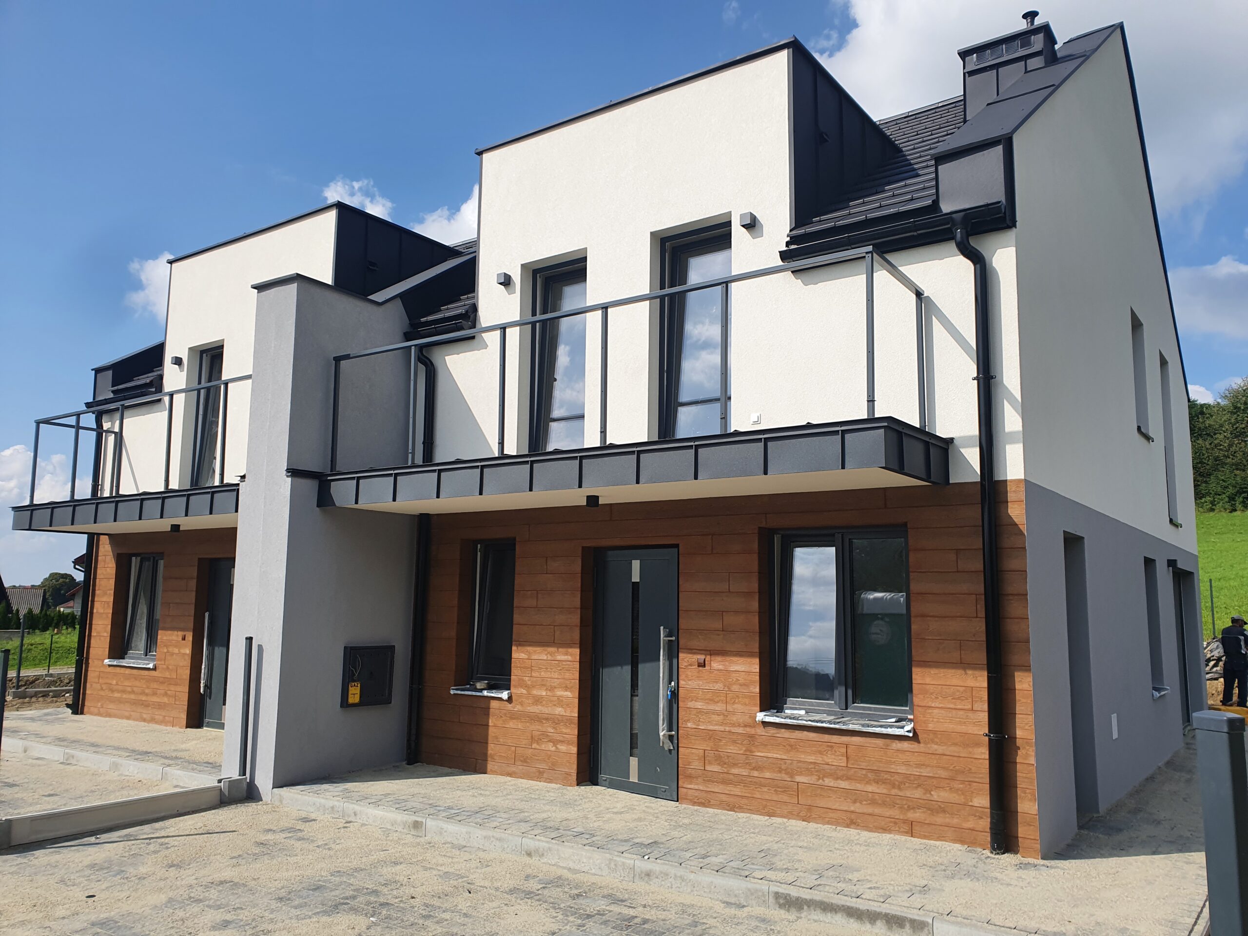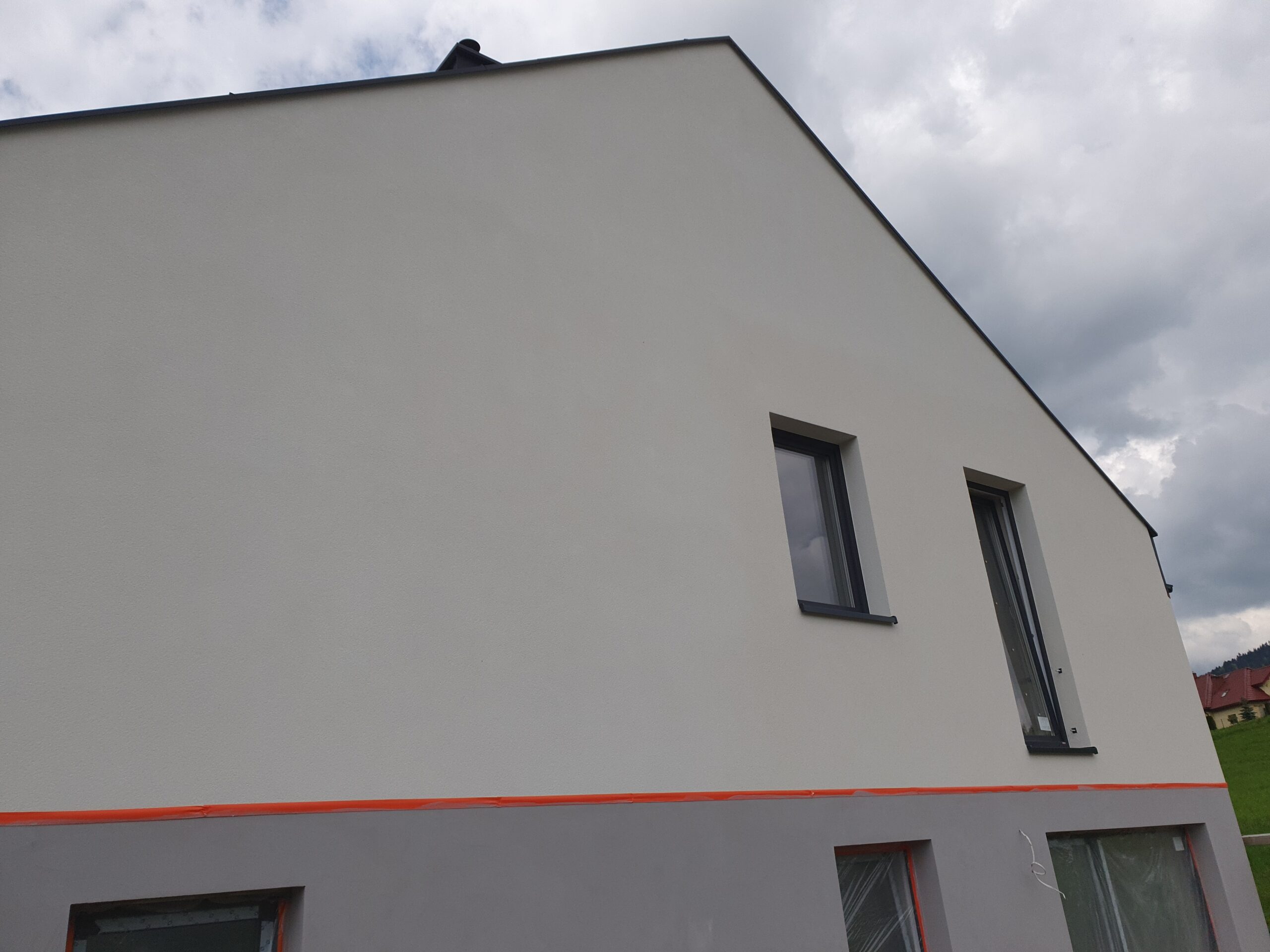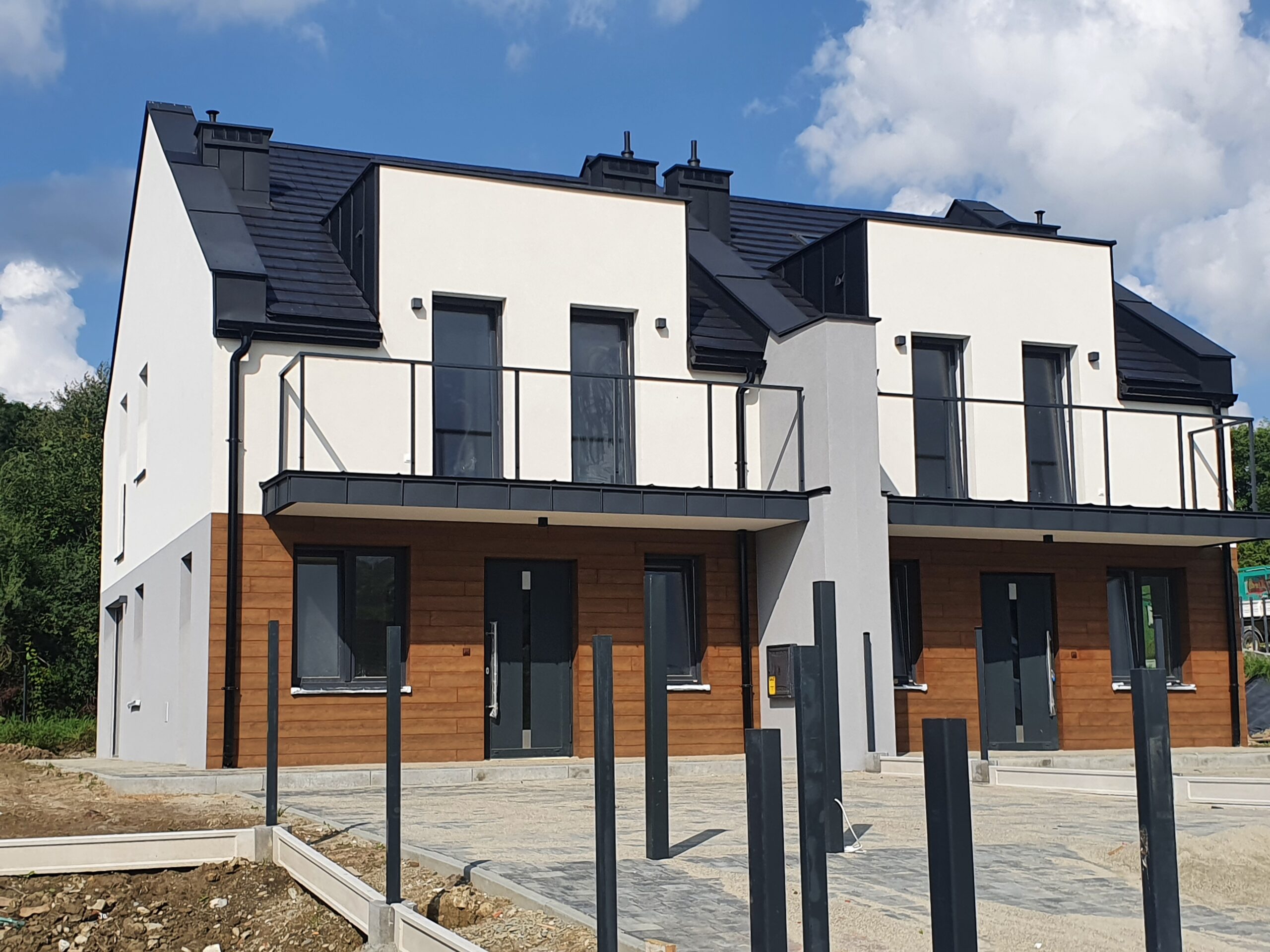 Zakres: Wykonaliśmy elewację 4 budynków jednorodzinnych w zabudowie bliźniaczej.