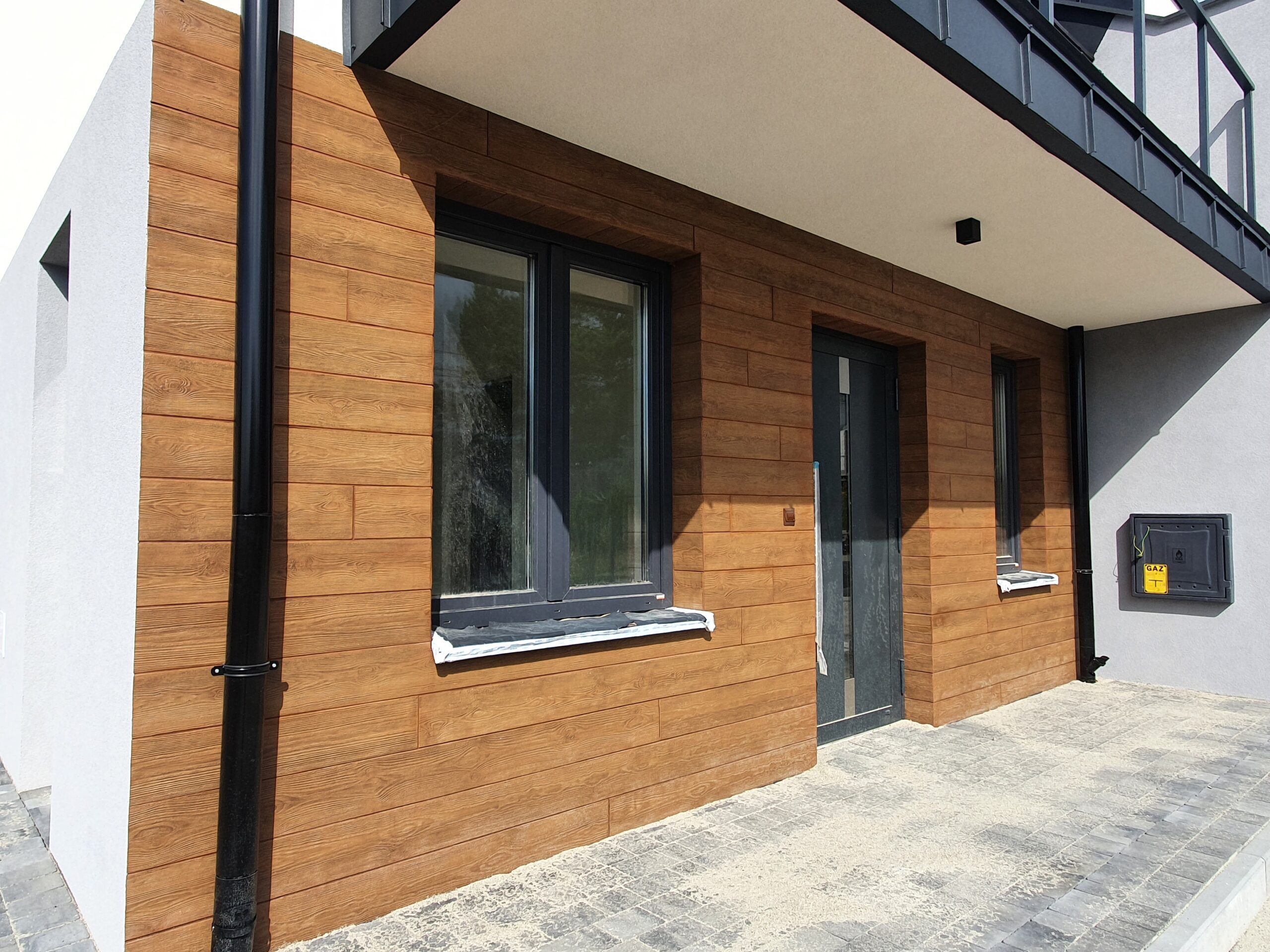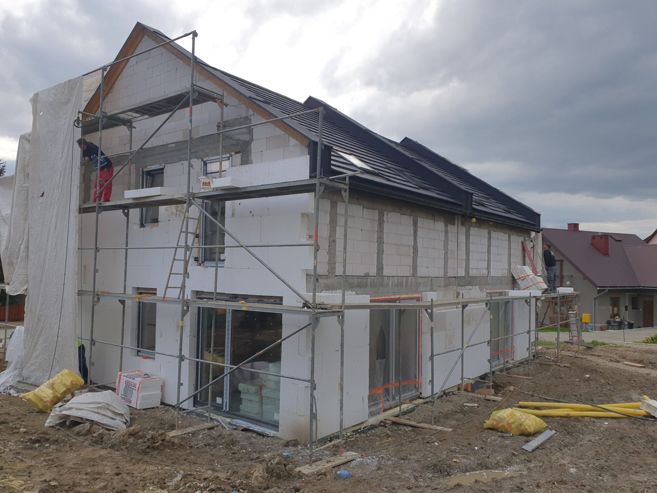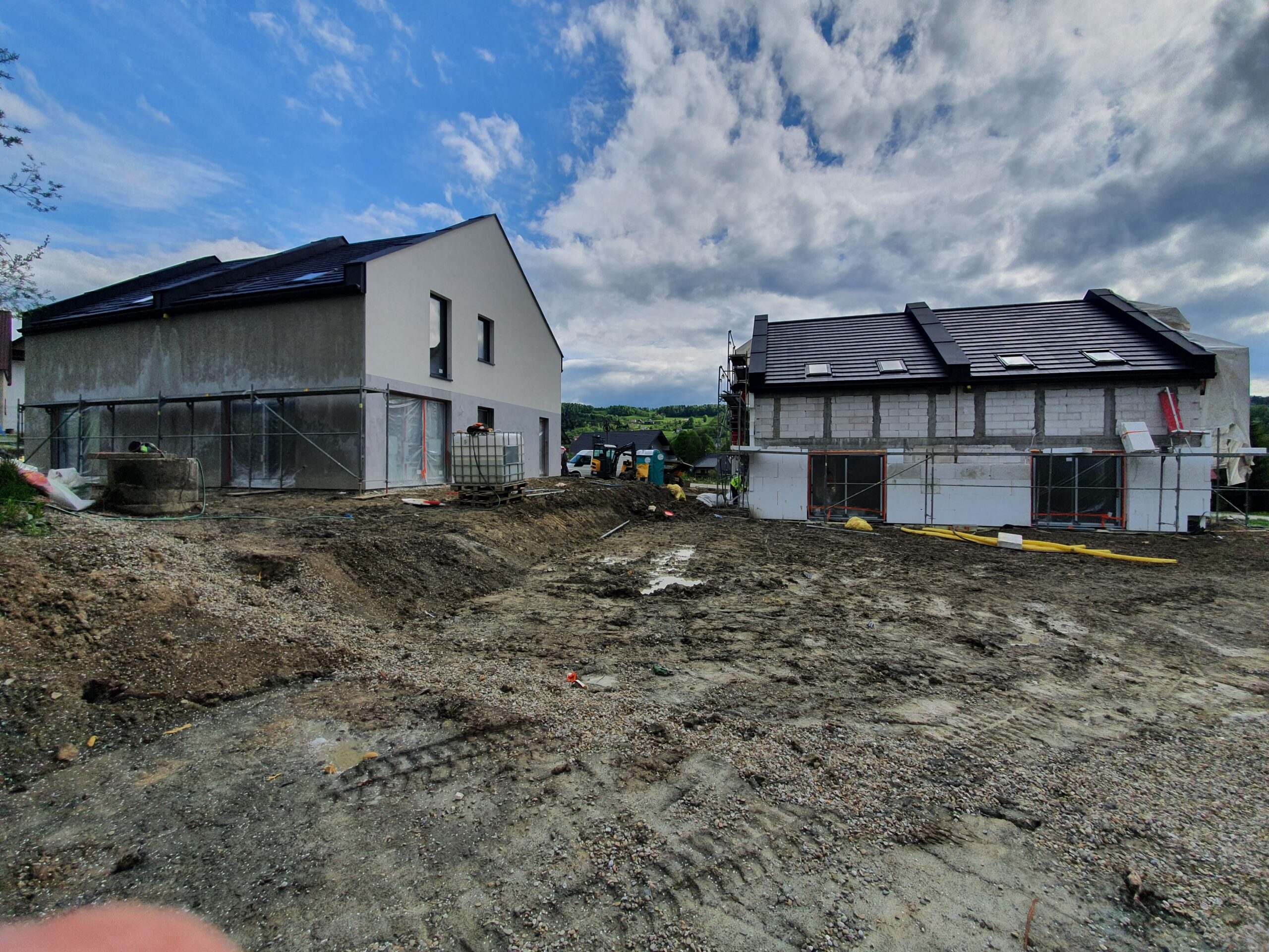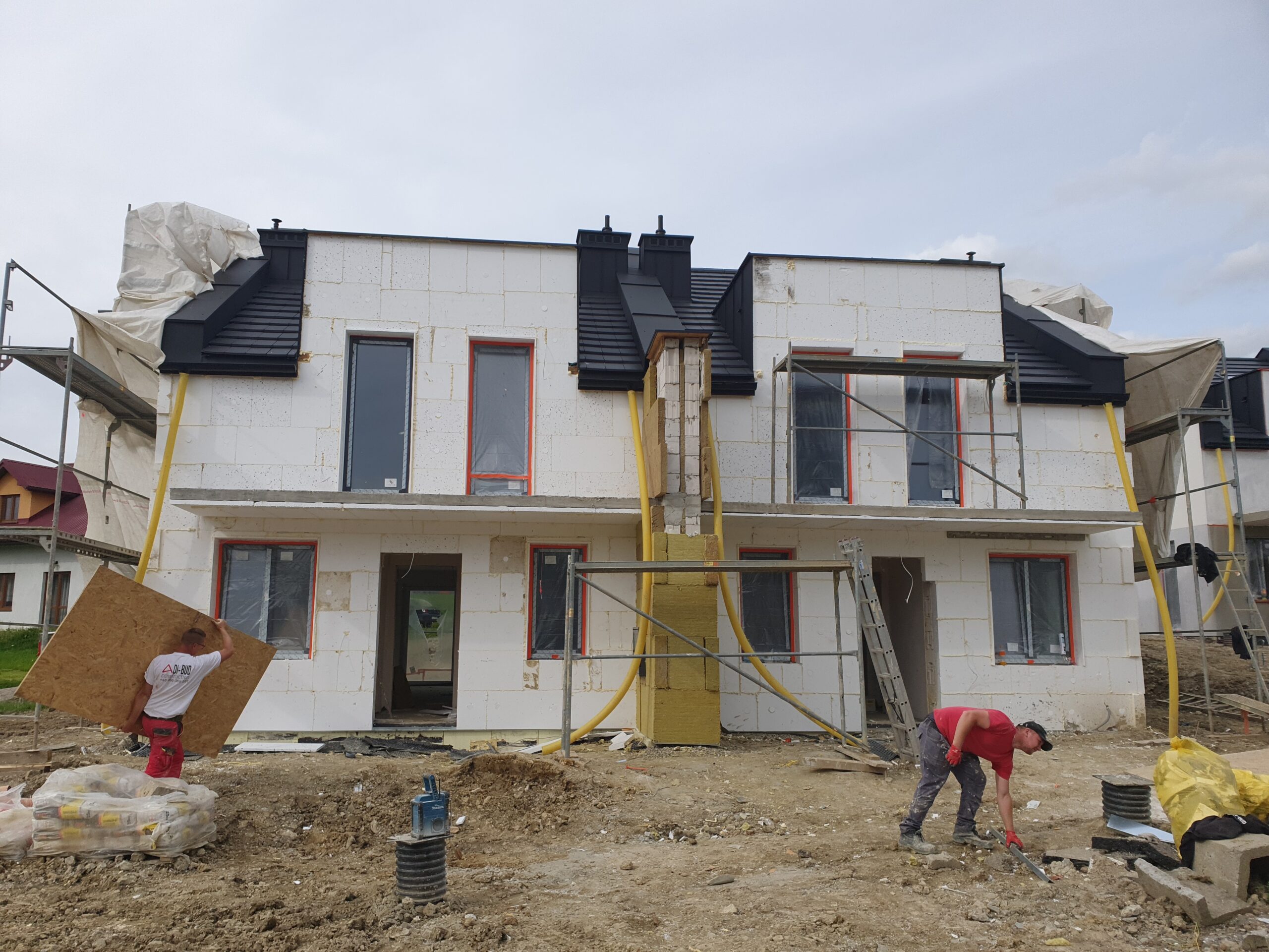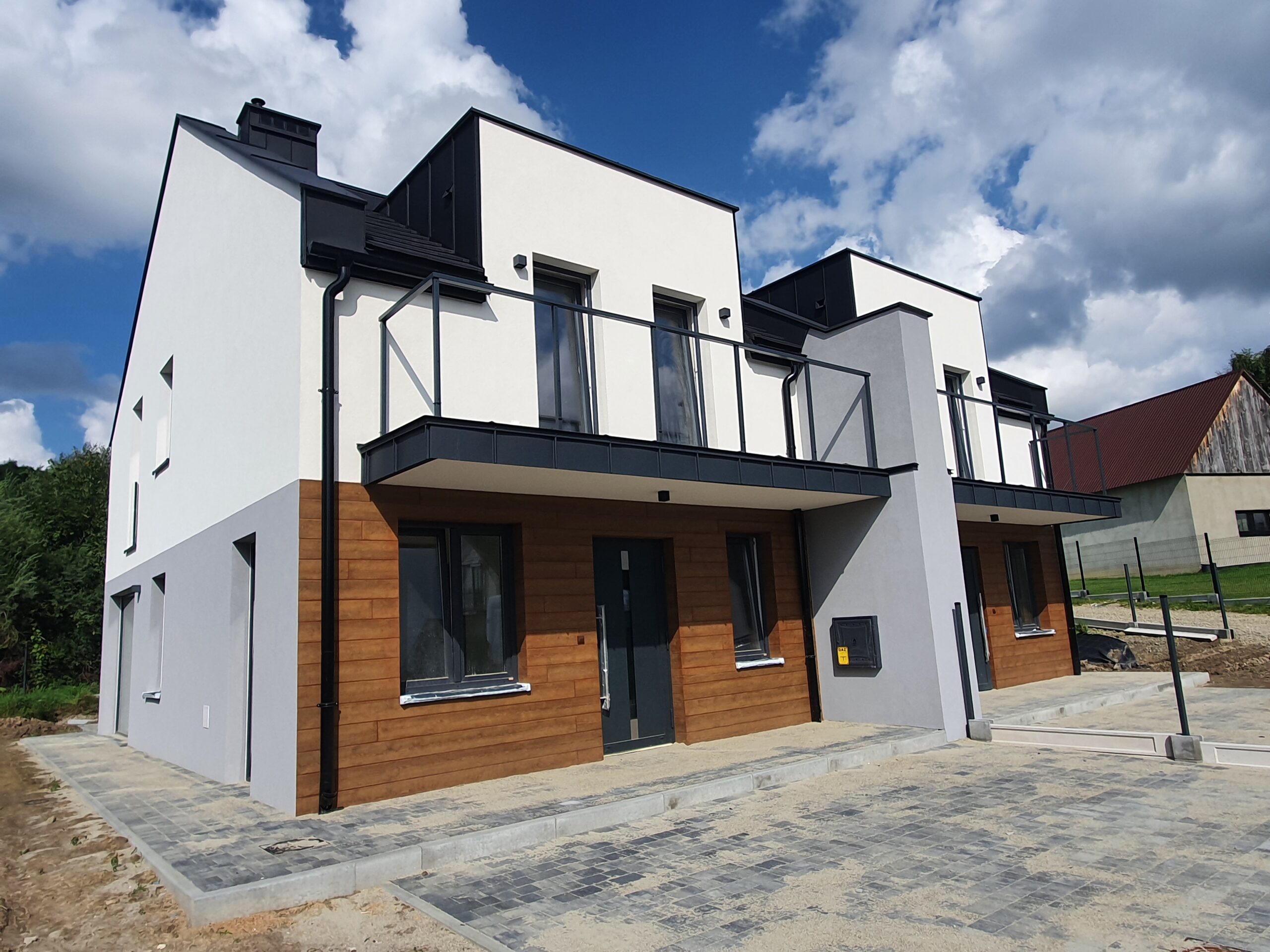 Zakres: Wykonaliśmy elewację 4 budynków jednorodzinnych w zabudowie bliźniaczej.